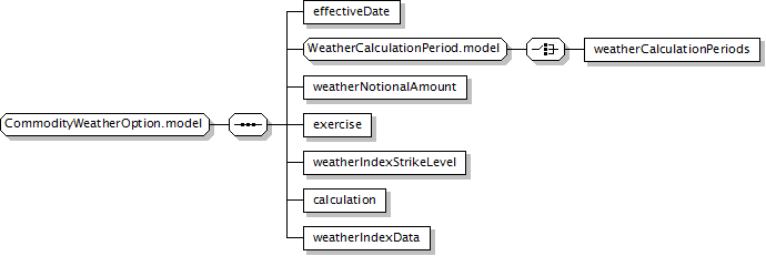 Described Weather Index Option component. Weather Index Option transactions are OTC derivative transactions which settle financially based on an index calculated from observations of temperature and precipitation at weather stations throughout the world. Sub-Annex C of the 2005 ISDA Commodity Definitions provides definitions and terms for a number of types of weather indices. These indices include: HDD (heating degree days), CDD (cooling degree days), CPD (critical precipitation days). Weather Index Option Transactions results in a cash flow to the buyer depending on the relationship between the Settlement Level to the Weather Index Strike Level.