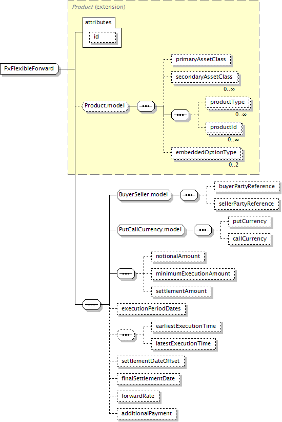 ( primaryAssetClass?, secondaryAssetClass*, productType*, productId*, embeddedOptionType[0..2])?, buyerPartyReference?, sellerPartyReference?, putCurrency?, callCurrency?, notionalAmount?, minimumExecutionAmount?, settlementAmount?, executionPeriodDates?, ( earliestExecutionTime?, latestExecutionTime?)?, settlementDateOffset?, finalSettlementDate?, forwardRate?, additionalPayment? |