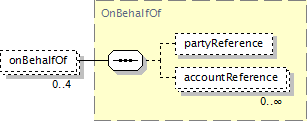Indicates which party (or parties) (and accounts) a trade or event is being processed for. Normally there will only be a maximum of 2 parties, but in the case of a novation there could be a transferor, transferee, remaining party, and other remaining party. Also, in the context of a trade package there could be several parties for which limit check is requested, necessitating multiple onBehalfOf elements. Except for these cases, there should be no more than two onBehalfOf references in a message.